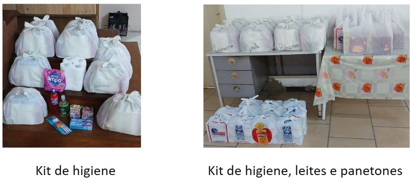 As cestas básicas foram entregues aos acolhidos no último sábado de cada mês, exceto em dezembro, quando a entrega ocorreu no sábado anterior ao Natal.